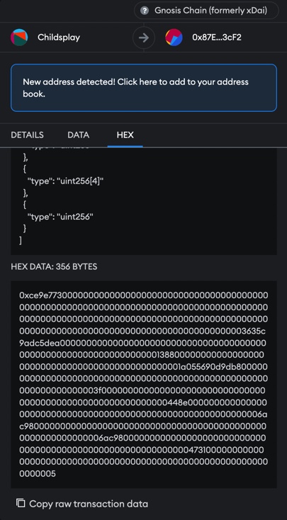 * To prepare the transaction itself, head over to the respective block explorer of the court deployment.