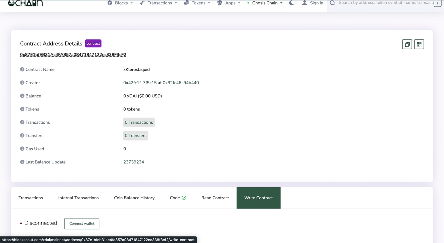 * Before writing to the contract, make sure your wallet is connected to the network of the deployment you’re trying to write to. In the example above, we’ll need to be connected to Gnosis Chain.