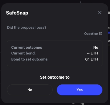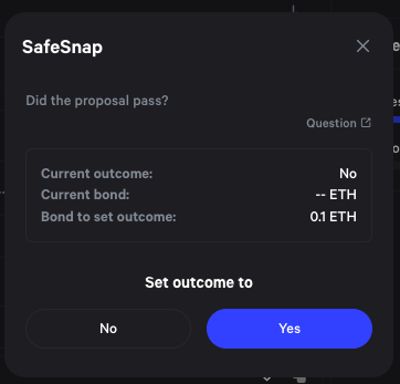 When the question is finally resolved, execution will not be able to start until the Cooldown period passes. When it passes, you can use Snapshot to execute. Open the proposal that was accepted, and on the SafeSnap plugin on the bottom, you can execute the transaction.