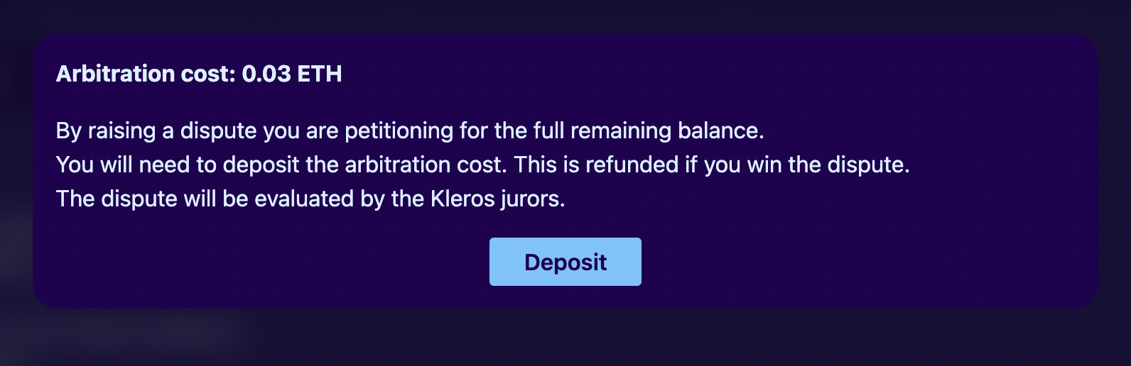 * You'll be shown the same arbitration cost (e.g., 0.03 ETH)