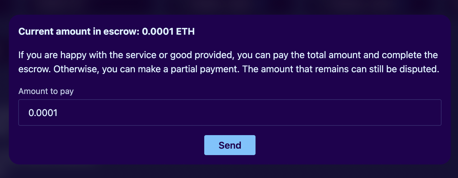 1. Sender decides to pay partial amount (e.g., 0.7 ETH out of 1 ETH escrow)